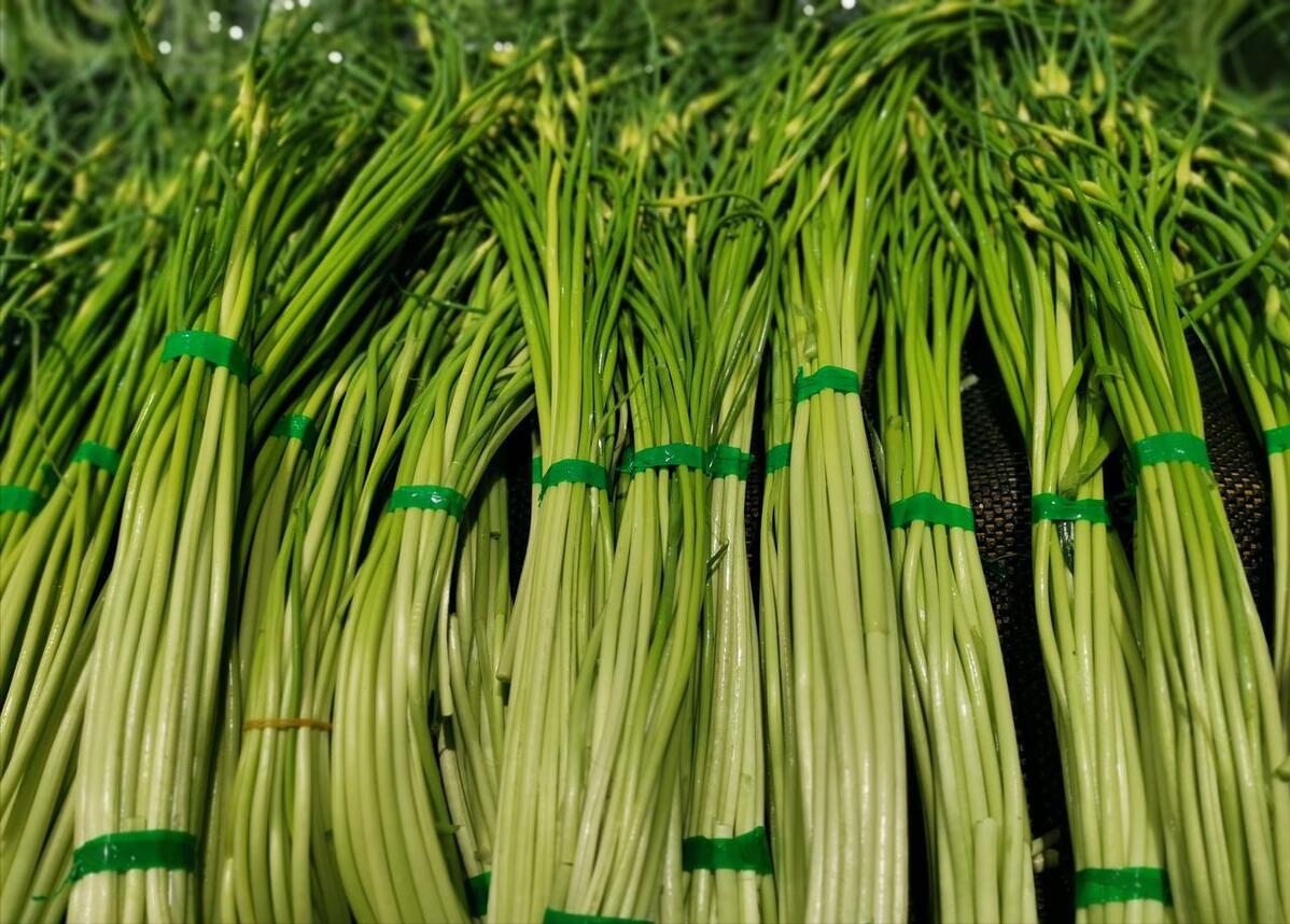 3、蒜薹,春天是蒜薹採收的時節,這個時候的本地蒜薹鮮嫩爽口,營養最高。蒜薹本身帶有一些辛辣味,有殺菌和消炎的好處,基本上也不會有蟲子喫它。