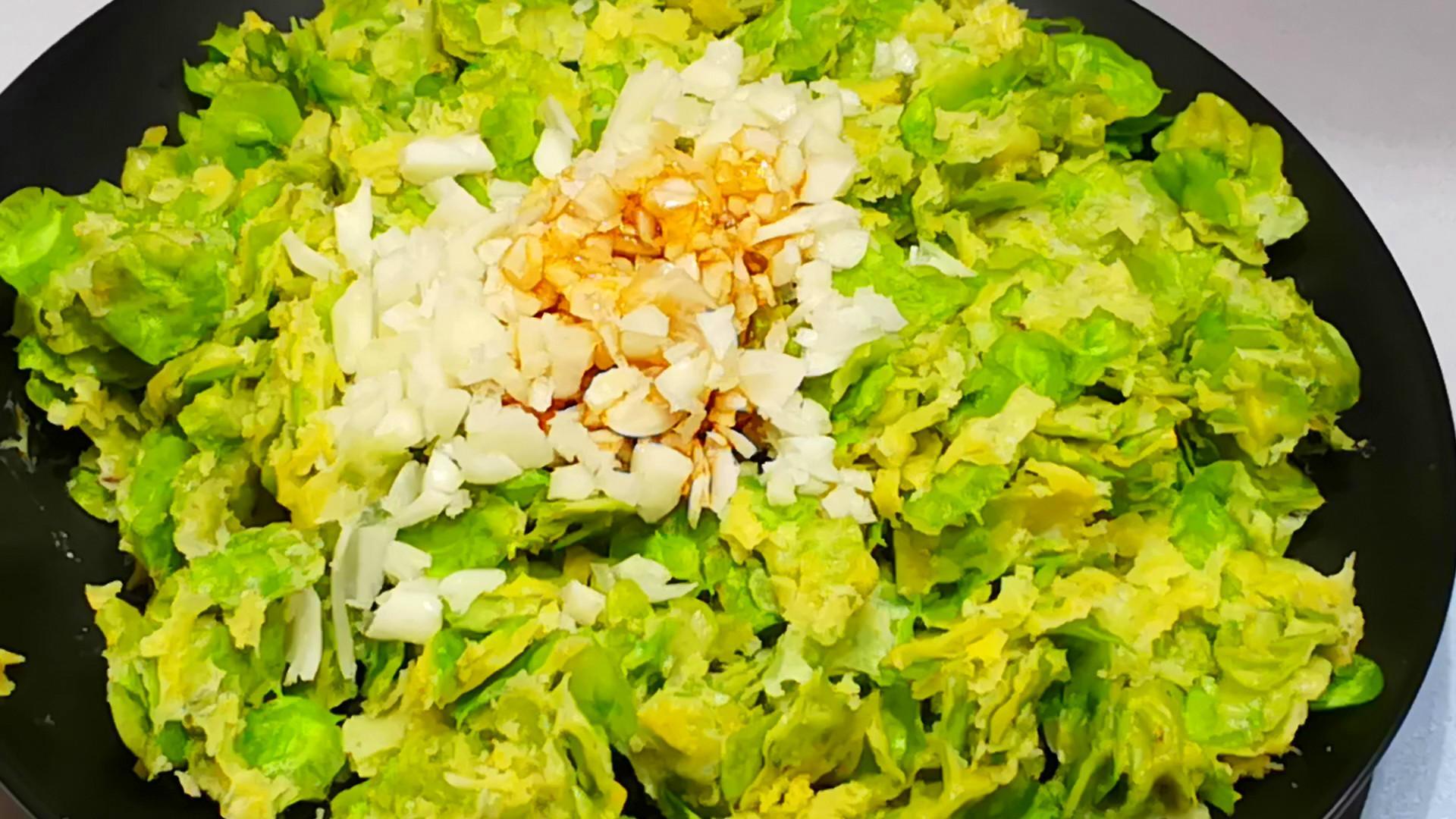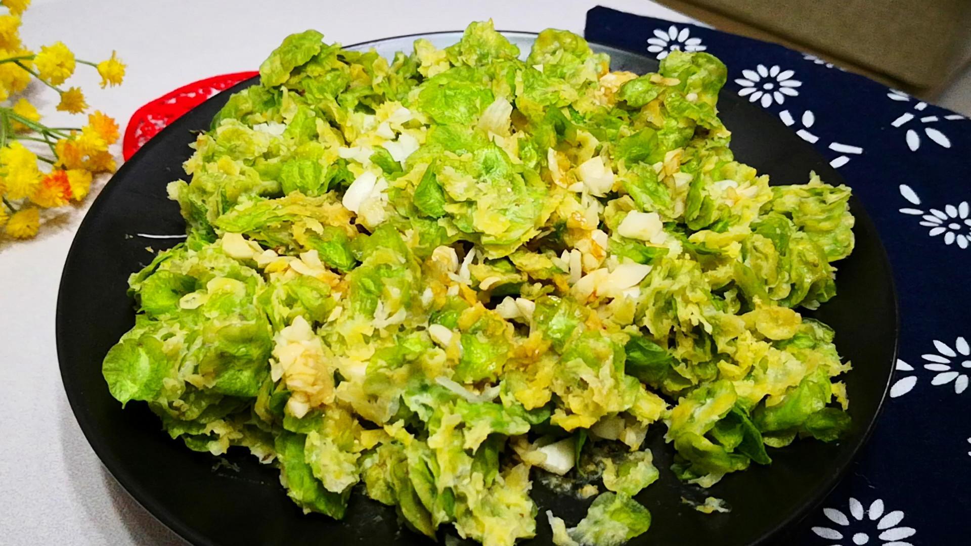 接着將榆錢放入鋪有屜布的蒸屜中,大約蒸10分鐘左右就可以出鍋了,最後再調一個自己喜歡的蒜泥汁,攪拌均勻後就可以開喫了。