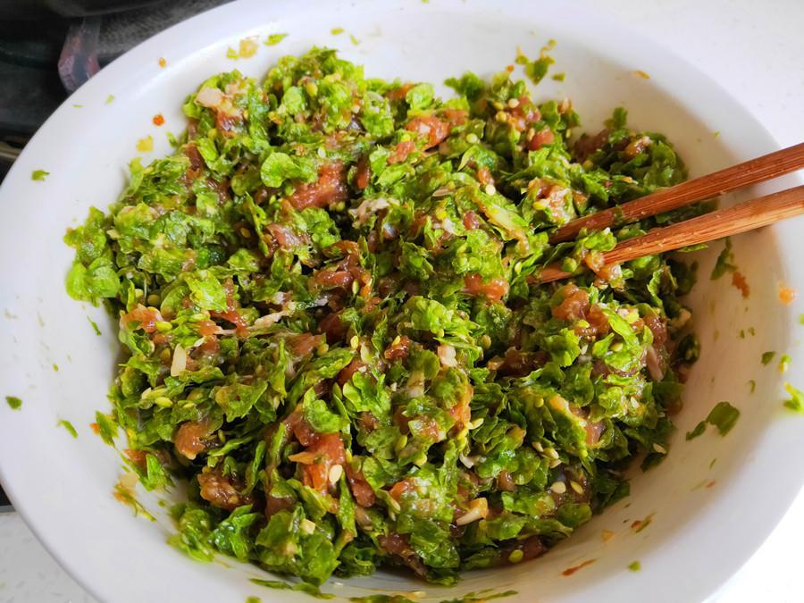 榆錢洗淨,加2勺食用油攪拌均勻後備用;豬肉適量剁成肉餡,然後加入1勺鹽、1勺醬油、1勺蠔油、適量的白胡椒粉、雞精、蔥花和薑末,攪拌至肉餡完全吸收後,再磕入一個雞蛋,再次攪拌均勻後醃製半個小時。半個小時後,再將肉餡和榆錢放到一起,繼續攪拌均勻就可以了,鮮嫩又多汁。