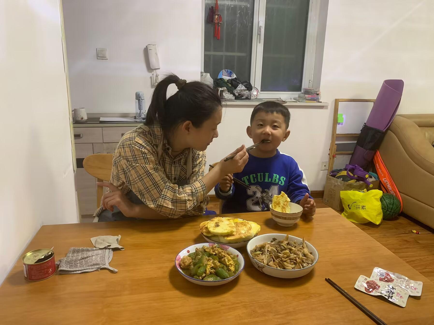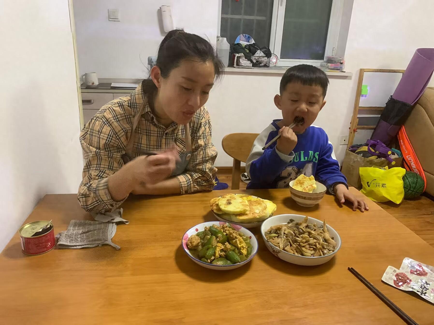 娘倆的早餐簡簡單單,炒了兩個孩子愛喫的青菜,又隨手煎了煎剩下的饅頭,孩子自理能力特別強,我喂他幾口還嫌棄我,不讓我喂,嘴裏唸叨着:媽媽別餵我。我們有說有笑的一會兒就喫飽了,又各自忙碌着穿衣服,他去上學,我去幹活。