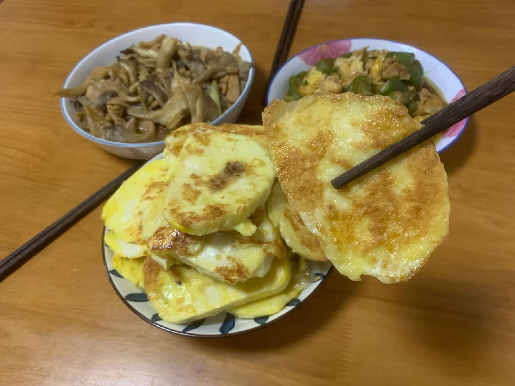 娘倆在家饅頭喫得也少,每次蒸一大鍋饅頭能喫半個月,把饅頭冷凍在冰箱裏,喫的時候拿出來蒸一下就可以。有時候饅頭放久了發乾、發硬,口感差了一些,我就會把饅頭切成薄片,外面裹上一層雞蛋液,用平底鍋煎一下,兩面煎至金黃就可以出鍋了。這樣做的饅頭片特別喧軟,有一股濃濃的蛋香味,孩子非常喜歡喫。