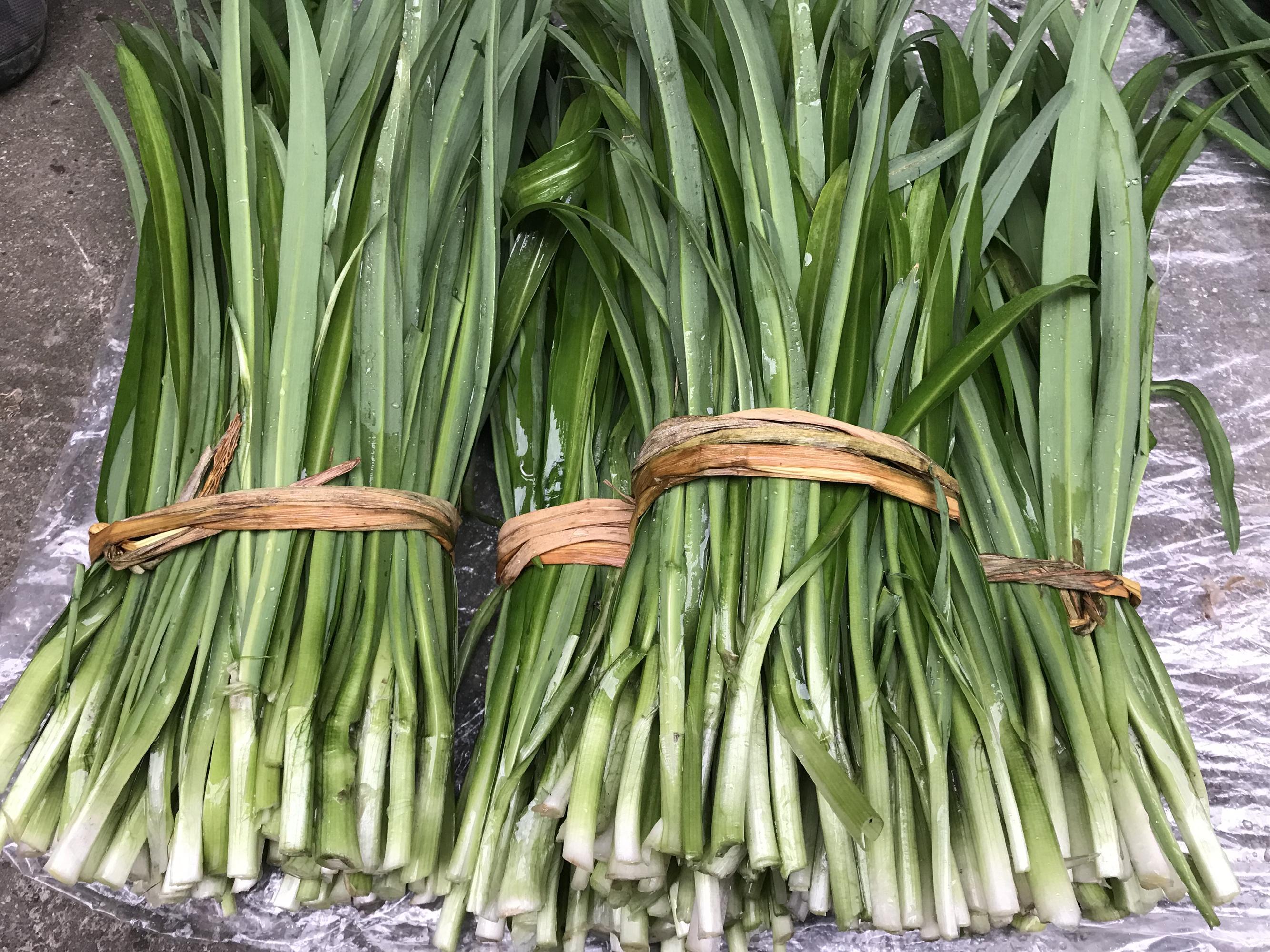 3、野韭菜,外觀像韭菜,但要比韭菜更粗,香味比種植的韭菜略淡,口感更鮮甜一些。野韭菜跟種植的韭菜一樣,含有大量的粗纖維,食用後能排出身體裏殘留的垃圾,有預防便祕的好處。