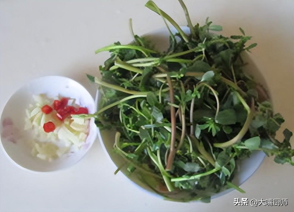 將採摘回來的馬齒莧摘去老葉和根部,放入清水中浸泡十五分鐘,然後仔細清洗乾淨。馬齒莧的葉片和莖部容易藏有泥沙和雜質,因此需要多清洗幾遍,確保衛生。