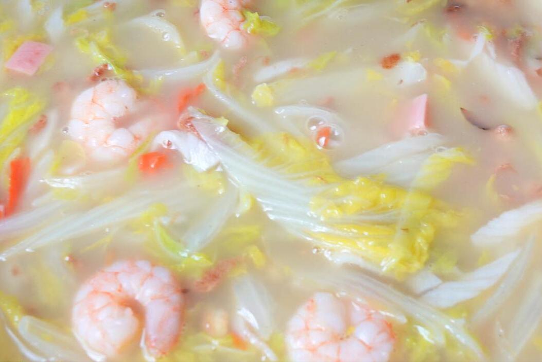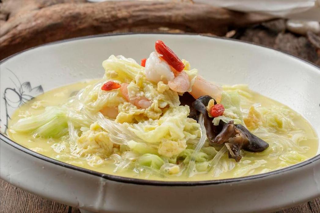 食材:大蝦、白菜、豆腐、生薑、鹽、白胡椒粉、雞精