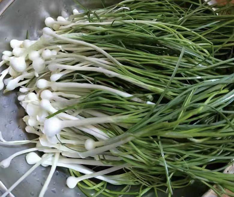 在衆多野菜中,唯有它最獨特,它是一簇一簇生長的,綠油油的一簇長在一起,它的葉子細長,不仔細看就像青草一樣,所以常被當成雜草,但是它適應能力特別強,有着“野火燒不盡,春風吹又養生”的精神,主要長在田邊荒草地或者樹林下,仔細用鏟子挖出來,根部像一個獨立的蒜頭,因此人們親切地稱之爲野蒜。
