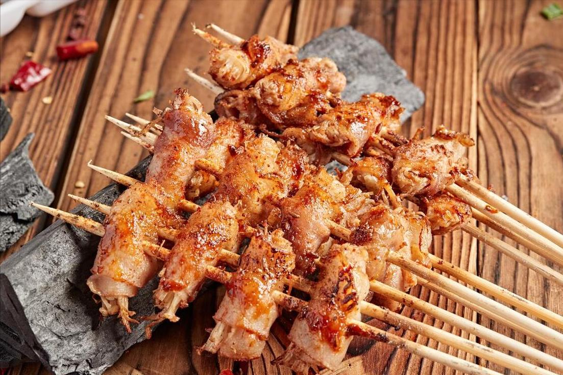2、接下來,我們準備一個小碗,往裏面倒上適量的燒烤醬,然後再來點食用油,攪拌均勻之後,用小刷子刷在培根金針菇上面,接下來放入烤箱中,160度烤10分鐘左右就差不多了,拿出來開喫!