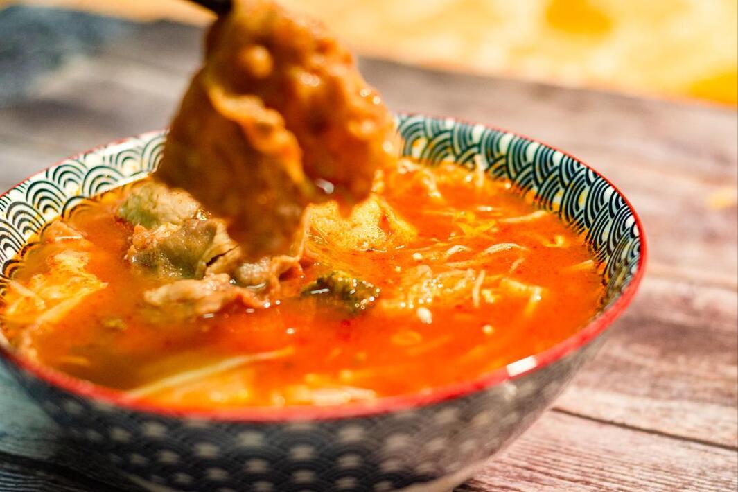 食材:金針菇、西紅柿、肥牛、蔥花、鹽、食用油