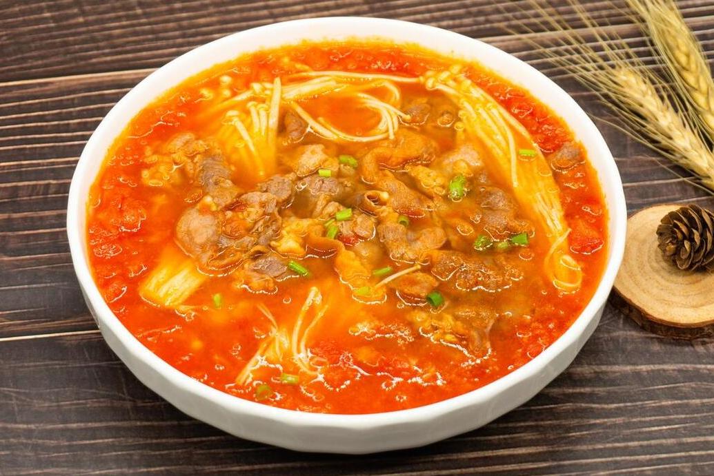 2、鍋中燒開水,下入肥牛焯水,直至變色後撈出來即可。起鍋燒油,燒熱後下入西紅柿翻炒,炒出湯汁以後,往裏面添上足量的開水,燒開後下入金針菇和肥牛,煮上幾分鐘,最後來點鹽調味,然後撒上少許蔥花,就可以出鍋啦。