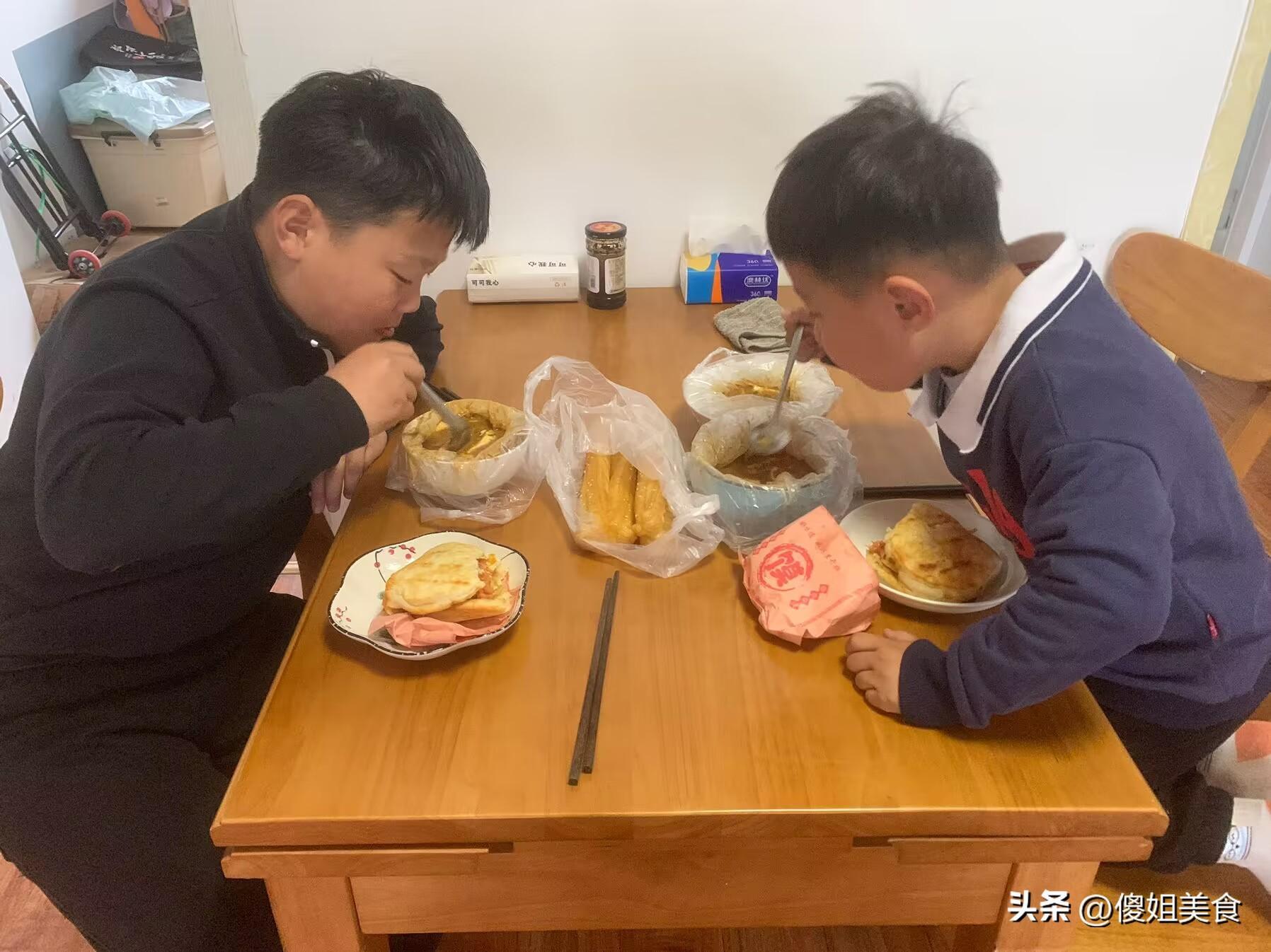 除了學習以外我還很發愁我家孩子們的早餐,我們娘三個每天的早餐不能簡單的再簡單,就是煮一些粥、煮雞蛋和各種鹹菜搭配着喫,總是這樣喫孩子們就喫膩了。頭天晚上孩子們就吵着要去外面喫早點,但是轉天早上孩子們起不來,我就早早的起牀去買早點,買了孩子們點名要喫的老豆腐和鐵板裏脊,外加我喜歡喫的油條。第一次給孩子們買早點喫,買回來後孩子們很開心,我就拿出手機隨手一拍往朋友圈裏一發,在朋友火了,網友:真寒磣,沒眼看!讓我心情不能平復,大家來看看我們的早餐寒磣嗎?