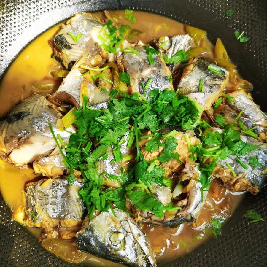 5、然後再用白糖、料酒、生抽、醋來調味,倒進去以後往裏面添水,水量需要沒過鮁魚纔行,然後用中火開始燉。燉上差不多20分鐘就可以了,到時間以後再來點鹽、雞精調味,最後用大火收汁就可以了,收到滿意的程度後,撒上一把香菜,出鍋。
