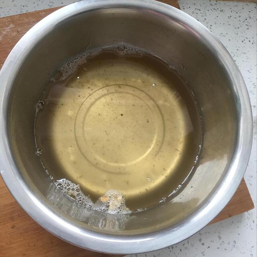 6、加進去以後,將豬油趁熱過濾到其中,待其冷卻以後就變得發白啦,這樣我們的豬油就做好了,炒什麼菜都好喫,做豬油拌飯更美味!