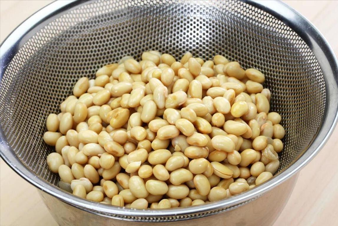 2、這裏要提醒大家一下,因爲黃豆在水中,如果溫度太高的話,是會發芽的,所以天熱的時候,就得放冰箱了,現在這個溫度還可以常溫下浸泡。等黃豆泡好後,拿出來瀝乾水分,然後沖洗2遍。