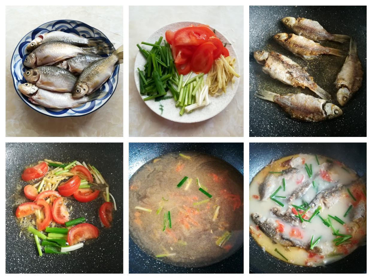 食材:鯽魚,西紅柿,生薑,香蔥,食用油,鹽