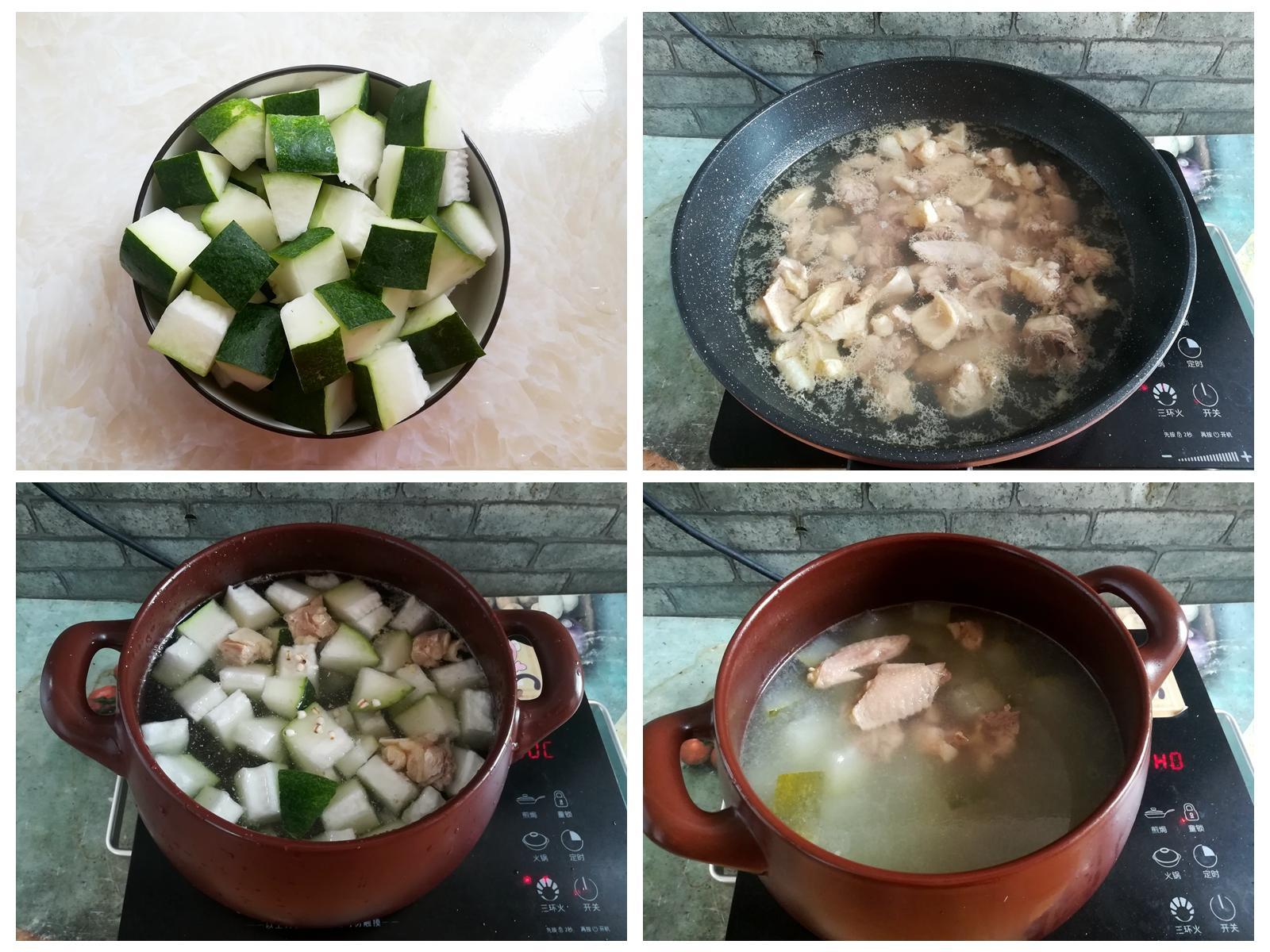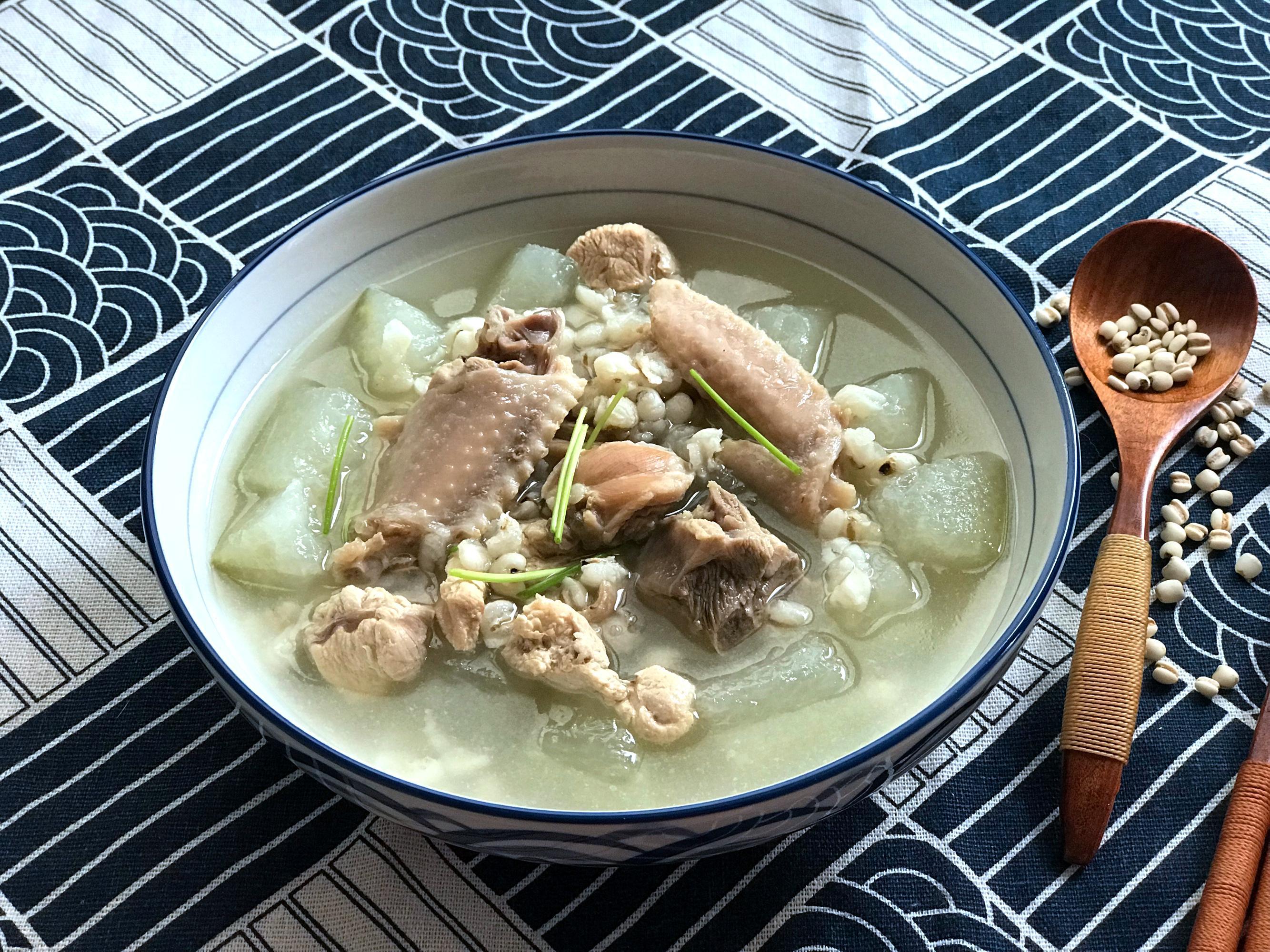 3,焯過水的雞肉、冬瓜和薏米一起放入砂鍋裏,加足量的水,大火煮開轉中小火燉40分鐘,加適量的鹽調味即可。