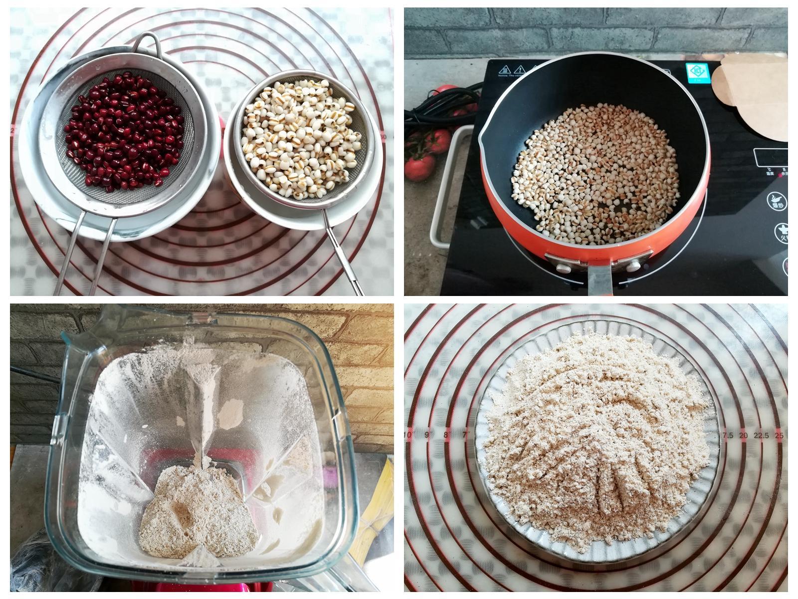 3,紅豆和薏米一起放入破壁機中,快速檔打10秒鐘,重複一次,打好的紅豆薏米粉取出來放涼,用可以密封的罐子裝起來。