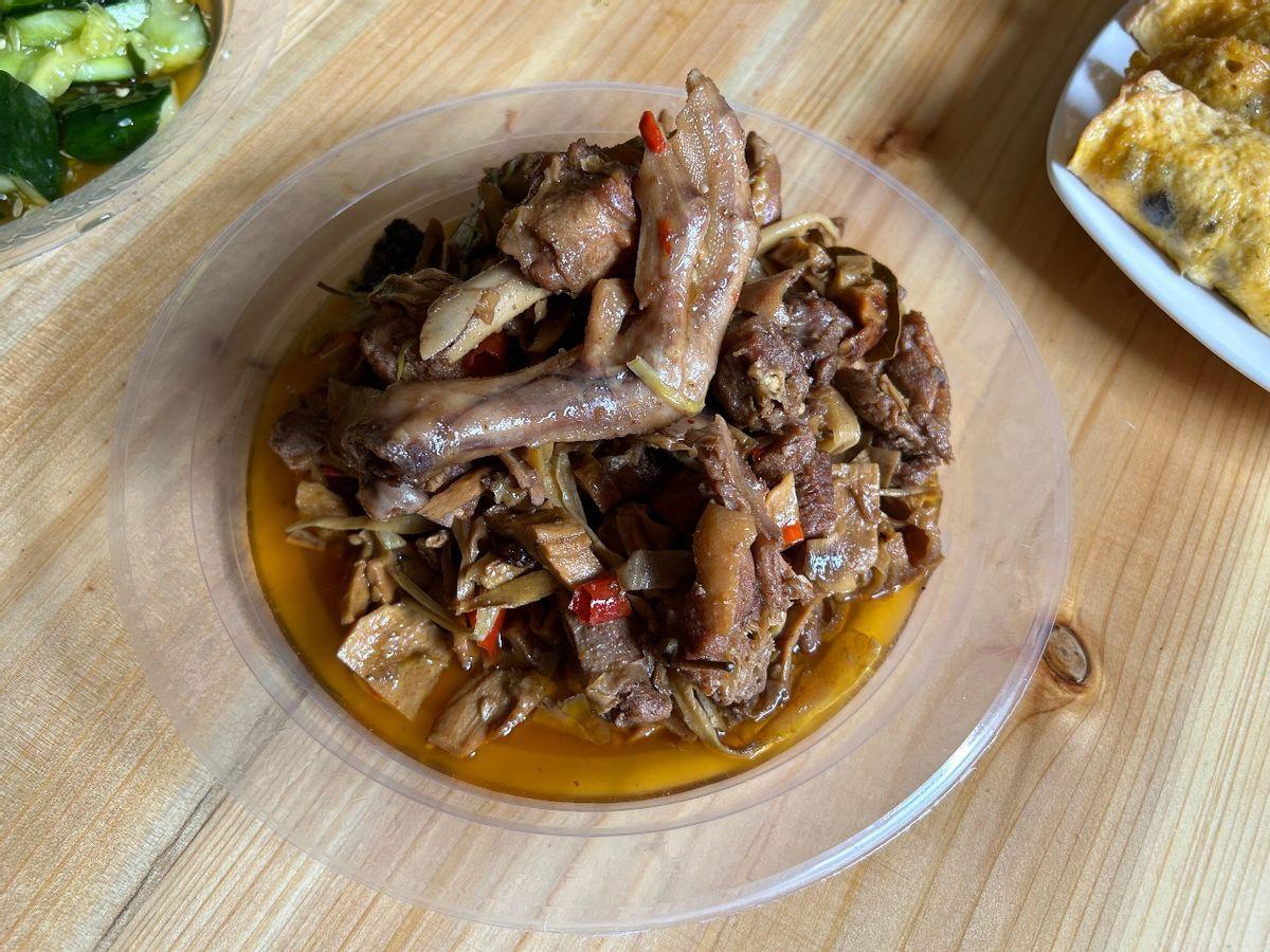 【啤酒鴨】很多人一定聽過桂林的啤酒魚,而啤酒鴨也是桂林的特色美食之一。鴨子也是婆婆家自己養的,處理好的鴨肉加上啤酒鴨一起燜熟,鴨肉的鮮香,啤酒的麥芽香氣,恰到好處的美味,鴨肉喫起來不幹不柴,特別入味。