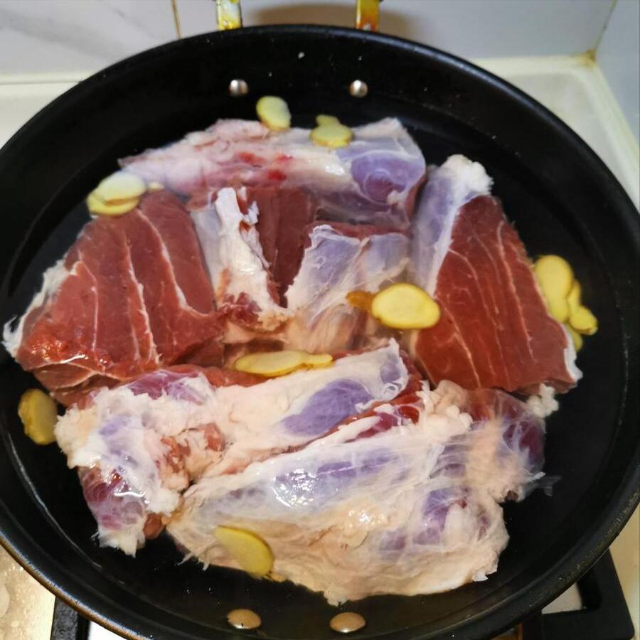 1、牛腱子買回來之後,放在水中清洗乾淨,然後切成幾個大塊,切好之後放在水中泡着,泡上2個小時左右。