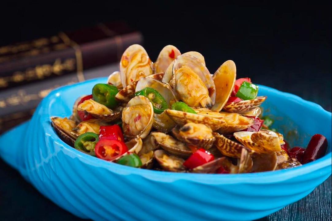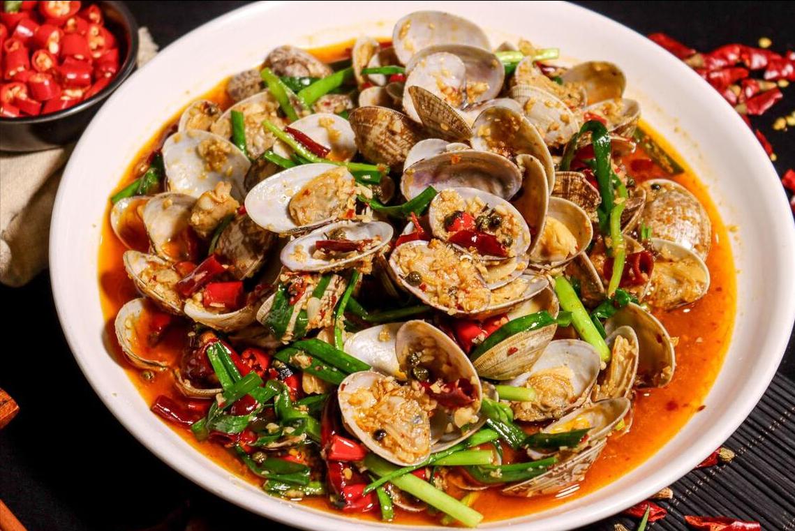 食材:花甲、幹辣椒、香菜、花椒、蔥薑蒜、豆瓣醬、鹽、白糖、雞精、生抽、蠔油、料酒
