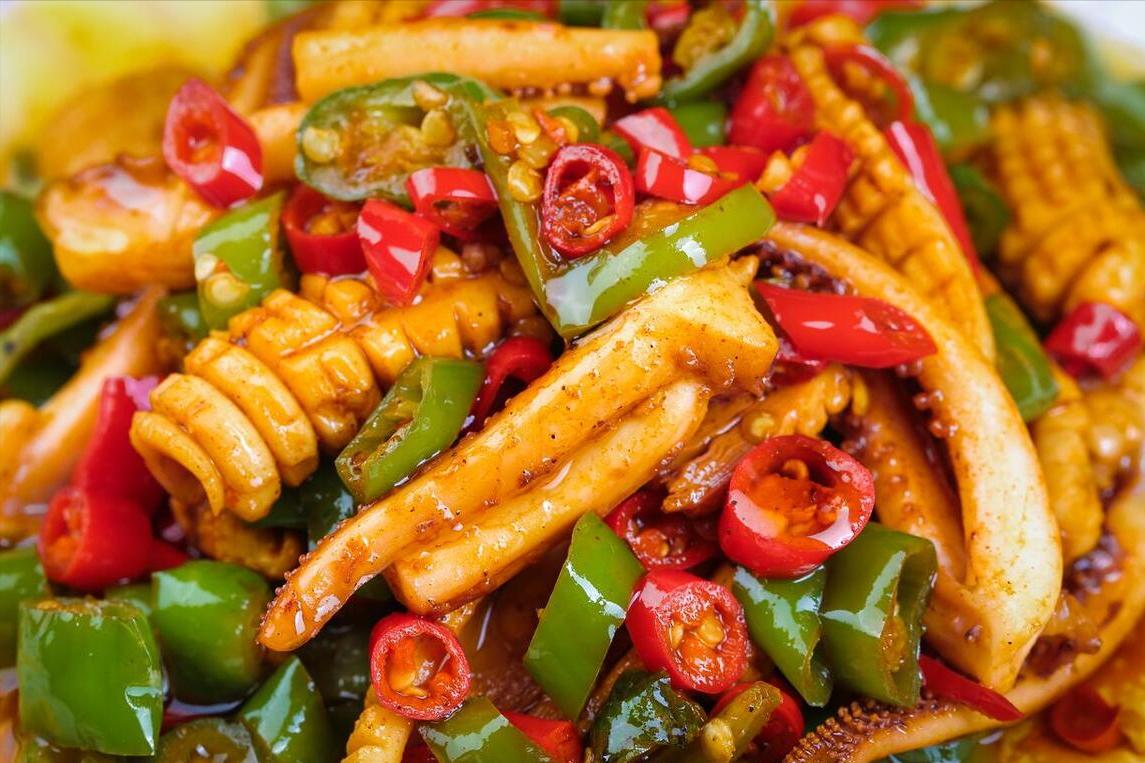 食材:魷魚、青紅辣椒、姜蒜、辣椒醬、生抽、食鹽