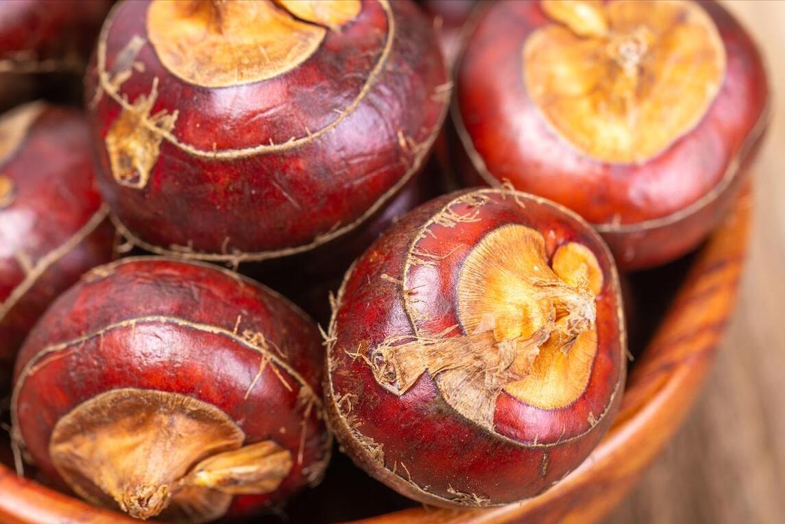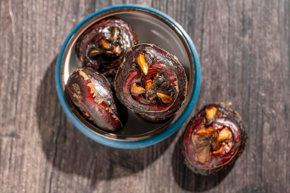 雖然看上去黑乎乎的,不太好看,但是剝出來裏面是白色的果肉,口感也脆嫩,是相當美味的。