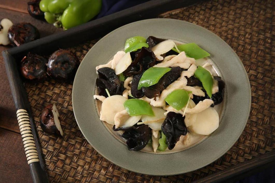 食材:馬蹄、木耳、香菜、蔥花、鹽、味精、水澱粉、食用油