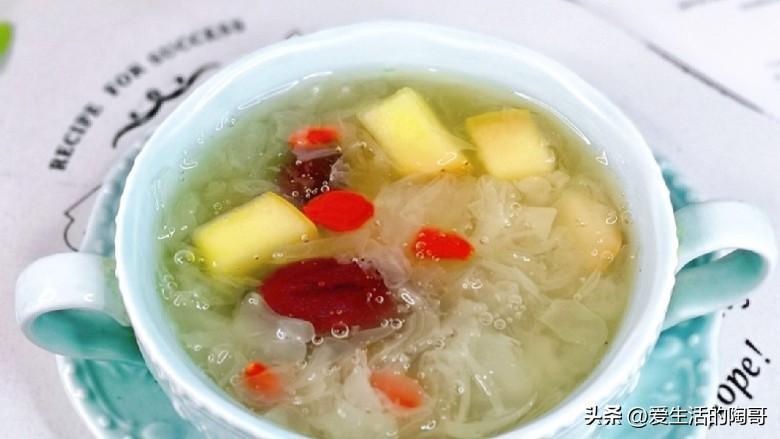 推薦喫法, 蘋果銀耳大棗湯。蘋果是身體健康的最佳助手,大棗女性偏愛的美容養顏之品,“每天喫3棗,青春不顯老”。幾種一起煮湯喝,補養身體、促進氣血生化循環,養顏護膚不顯老。