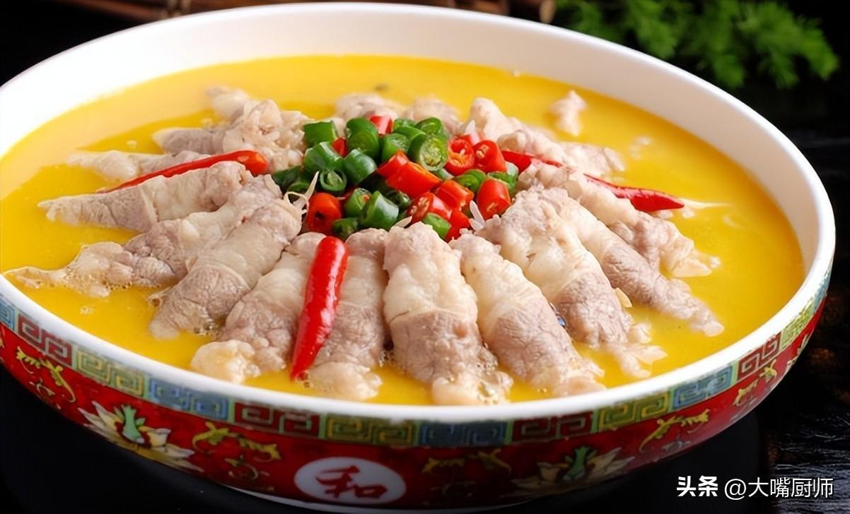 金湯肥牛是一道色香味誘人的川菜,酸爽開胃,肥牛鮮嫩多汁。製作時,將肥牛切片,用料酒、鹽醃製片刻。然後調製金湯料汁,將黃燈籠椒醬、白醋、鹽、糖、雞精拌勻。接着熱鍋涼油,放入蔥薑蒜炒香,倒入金湯料汁煮沸。