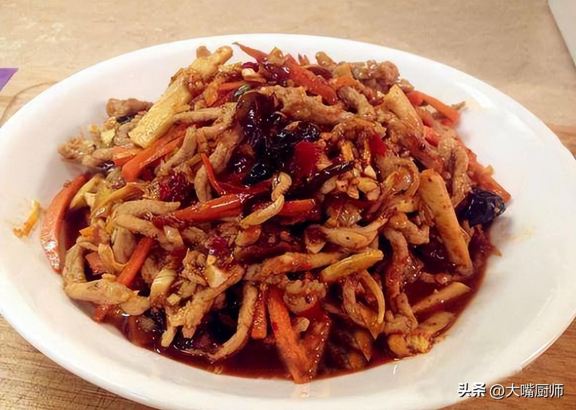 接着鍋中留底油,放入蔥薑蒜炒香,加入豆瓣醬炒出紅油。再倒入木耳、胡蘿蔔、青椒絲翻炒至斷生,加入炒好的肉絲和特製的魚香醬汁(由生抽、老抽、糖、醋、鹽、雞精等調製而成)調味。最後勾入水澱粉收汁,翻炒均勻即可出鍋。這道菜酸甜微辣,口感豐富,深受家人喜愛。