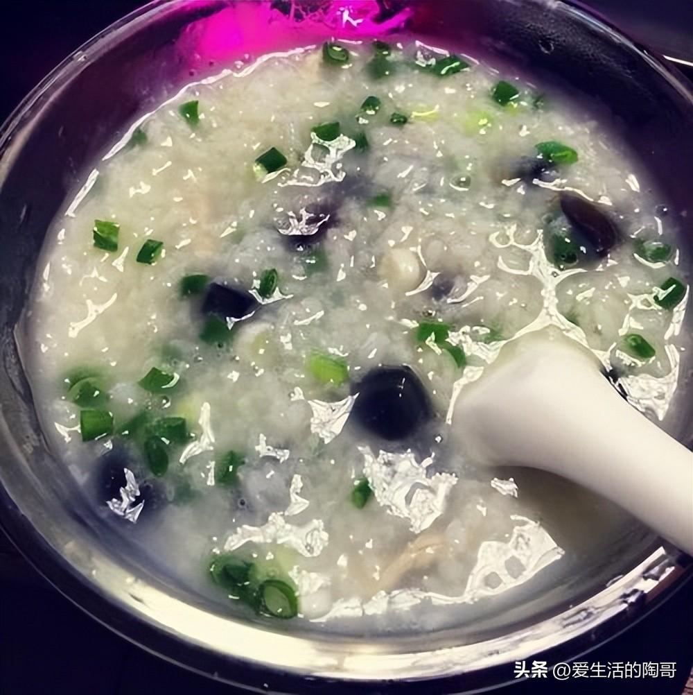 4粥煮好了,放進皮蛋碎,繼續煮
