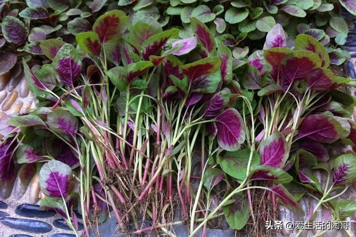 紅色莧菜,相對葉片要小一些,口感很軟棉,最好是做湯來喫,味道是比較鮮美的。