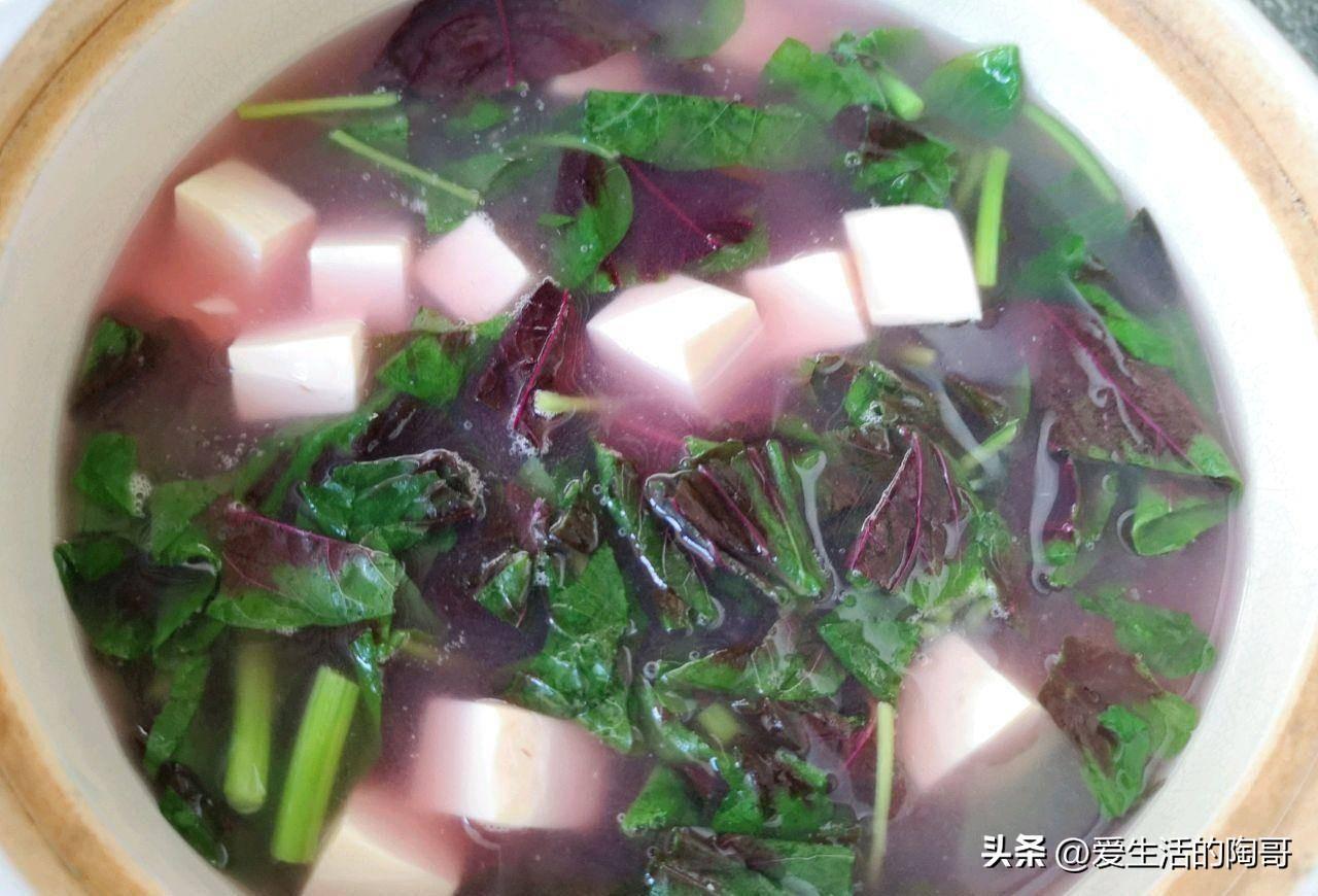 莧菜的紅色與豆腐一起融合,做好的湯顏色好看,味道鮮美。