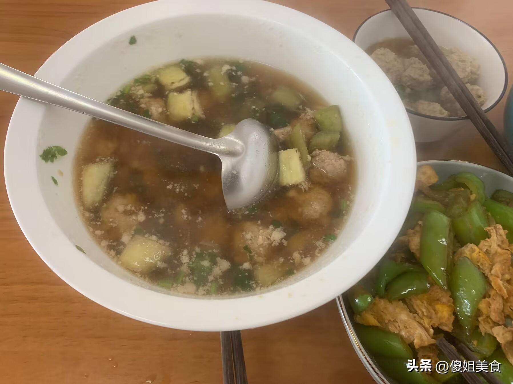 一聽老公要回來這可把我高興壞了,早起把孩子們送到奶奶家後,騎着我的小電驢就跑去集市上,買了2斤新鮮的牛肉,老公最喜歡喫牛肉丸子,每次回家都會做給他喫。牛肉雖然貴了點,再貴也要捨得喫,喫好了纔會有個好身體。牛肉買回來後自己剁成牛肉泥,放入調味品調好後,直接團成圓子放入開水鍋內,再放一個茄子,葷素搭配,牛肉丸子煮熟後噴香,濃濃的香味,一看就特好喫。