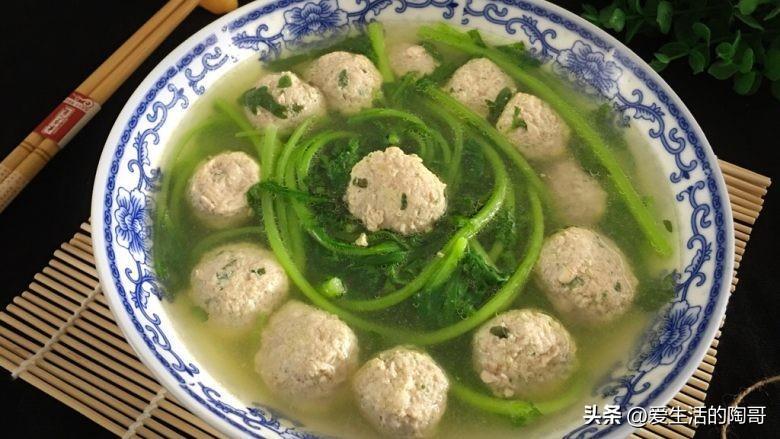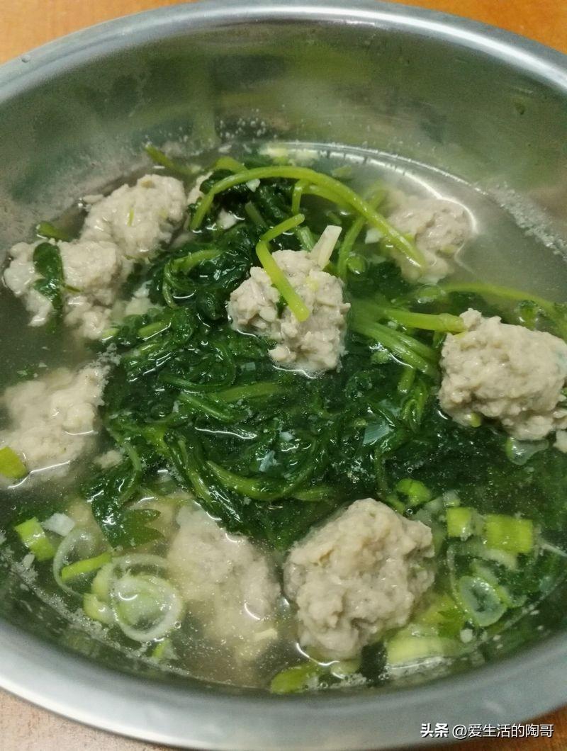 茼蒿營養高,有“皇帝菜”的美譽,春季的時令蔬菜,葉嫩,杆細,味道清香。搭配蝦皮肉丸一起做湯喝,營養美味,養人又養生,春季裏一道滋補湯。