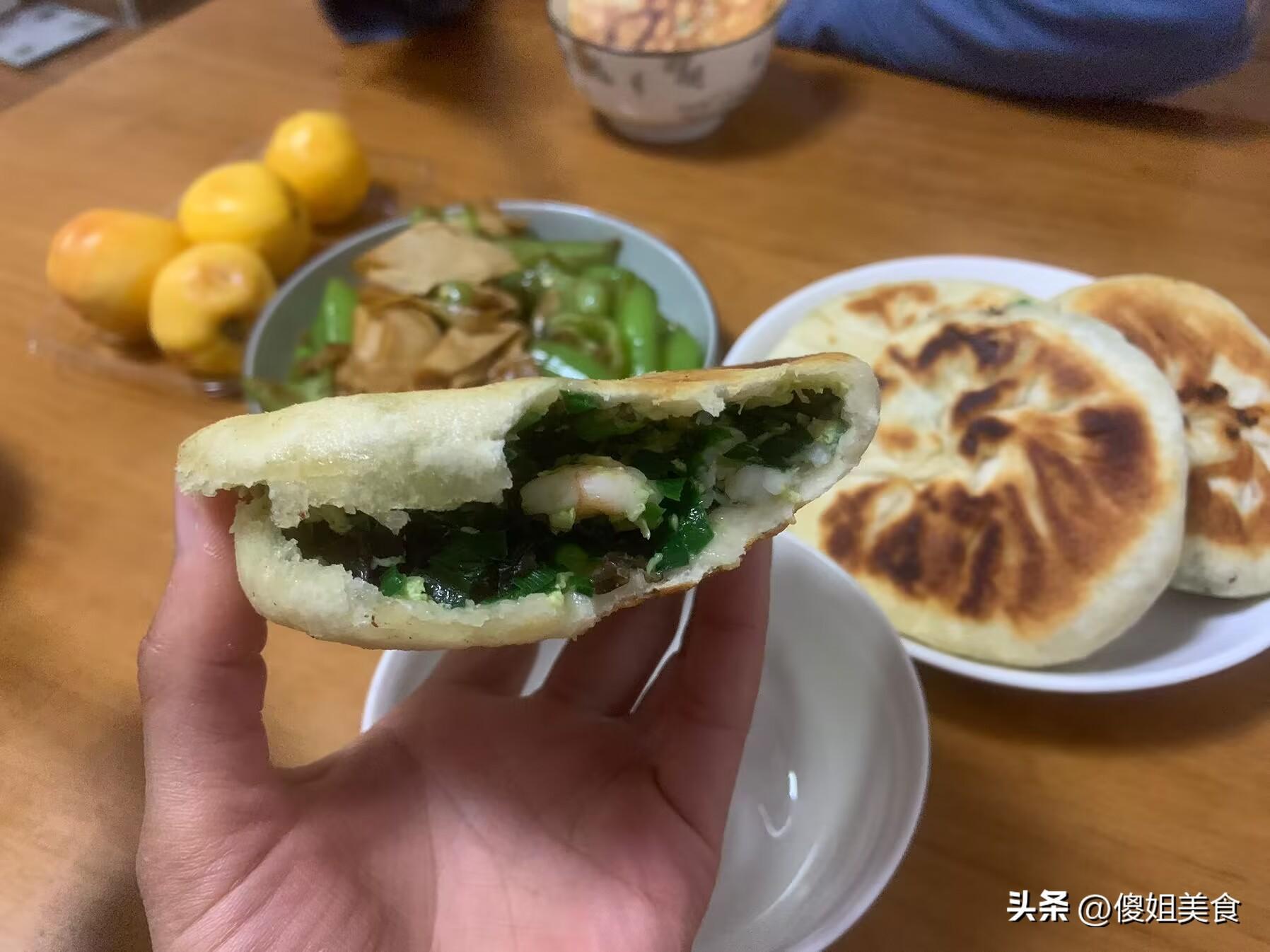 幾天前我就饞婆婆烙的韭菜蝦仁餡餅,看婆婆帶孩子不方便,一直也沒好意思說,那天在小菜園和婆婆聊天說:韭菜長的真好,也能喫着了,可以烙餡餅喫了。婆婆可記在心裏了,沒想到今天中午就把饞了好久的韭菜蝦仁餡餅喫到嘴裏了。