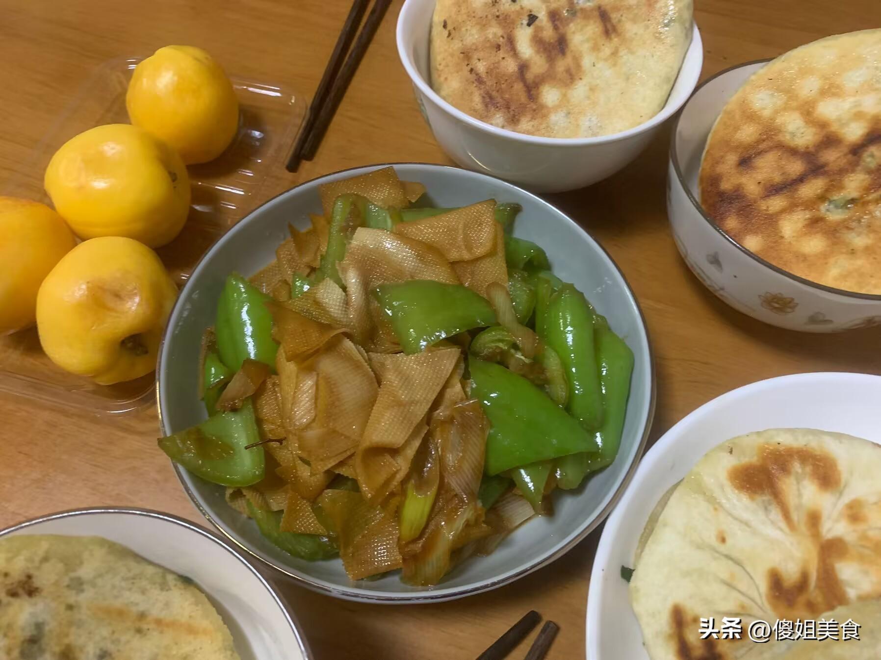 我比較喜歡喫蔬菜,每頓飯必須要炒一個菜,不然總感覺喫不飽,婆婆不嫌麻煩,一日三餐最少炒一個菜,今天做了我最愛喫的青椒炒千張。每天我下班都會順路捎一些新鮮的蔬菜,正趕上青椒搞促銷,10元5斤,買了一大兜,婆婆用青椒和千張搭配炒了炒,還挺好喫,香辣可口,千張越嚼越香。