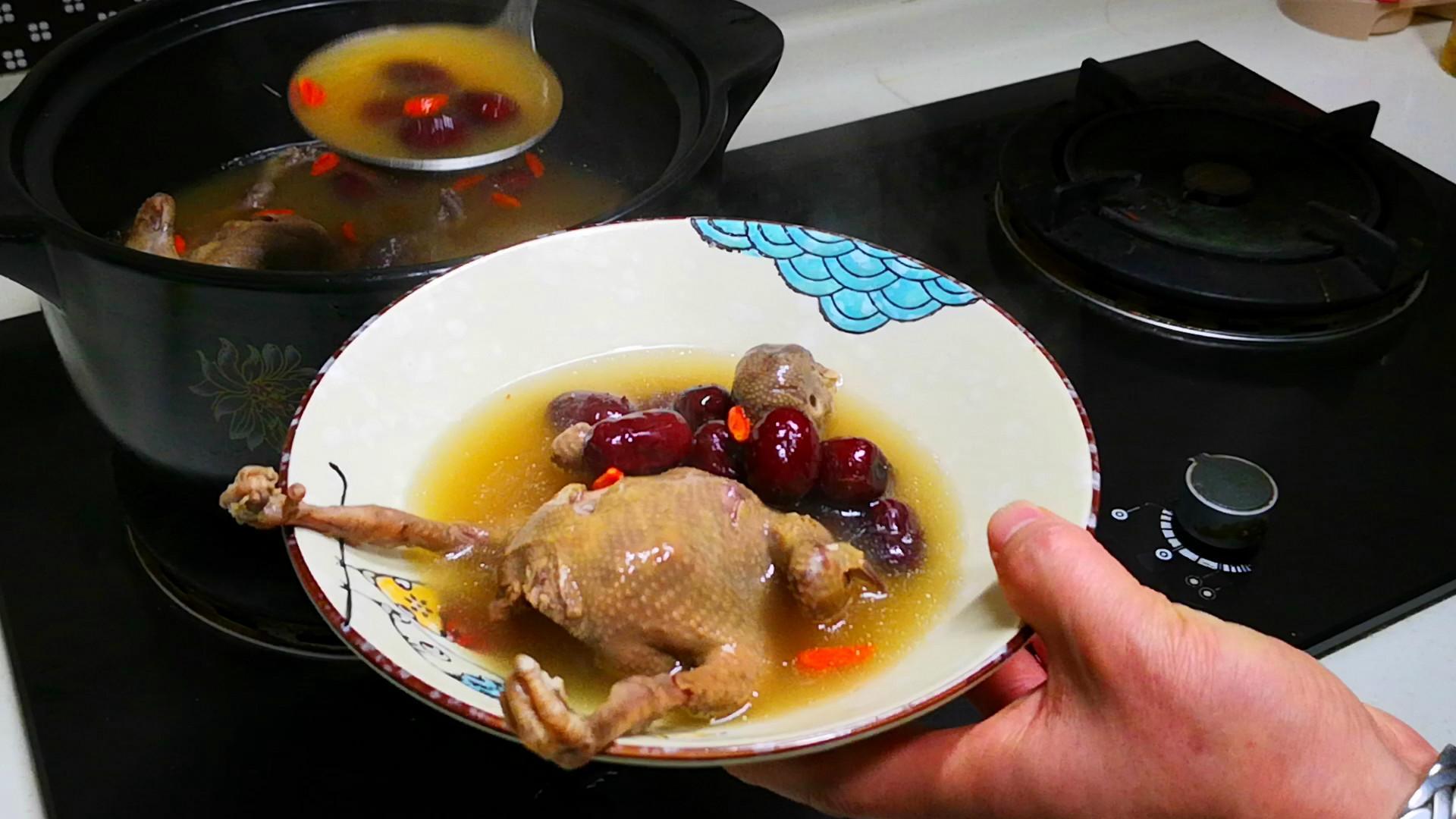 鴿子處理乾淨後先焯水,然後放入砂鍋中,一次性加足水,再放入大棗,開大火燒開後,再轉成中小火慢燉一個小時,一個小時後再加入一把枸杞和適量的鹽,然後繼續燉2分鐘。時間到了後關火盛出即可。
