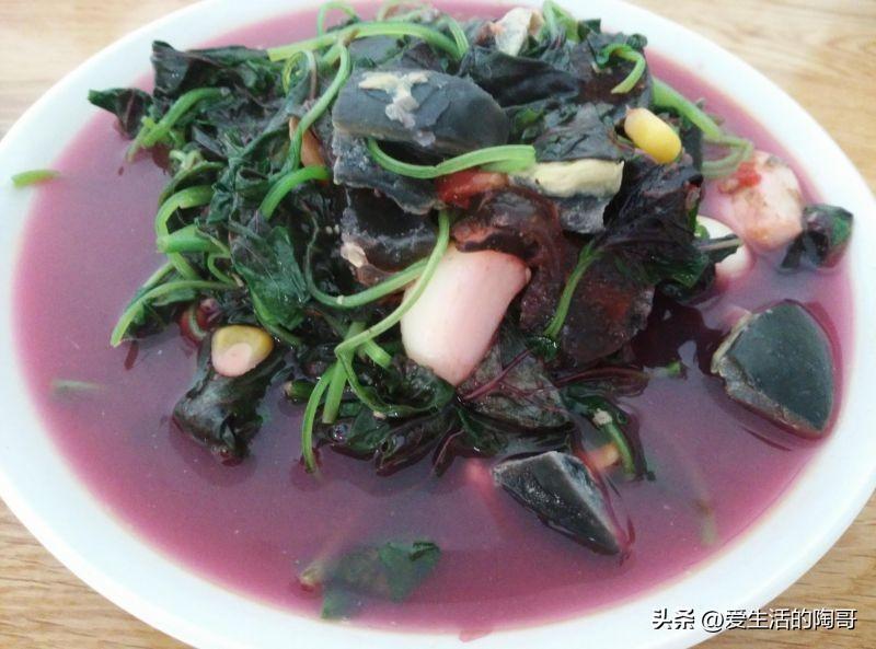 紅莧菜搭配皮蛋一起做湯喝,湯鮮味美,人人愛喝。