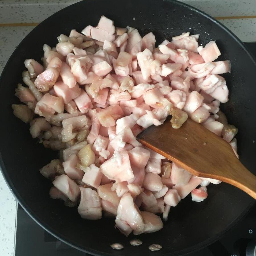 1、準備好肥豬肉或者是豬板油,當然如果能買到豬板油,那是最好的,肥豬肉是備選,買來後切成小塊。