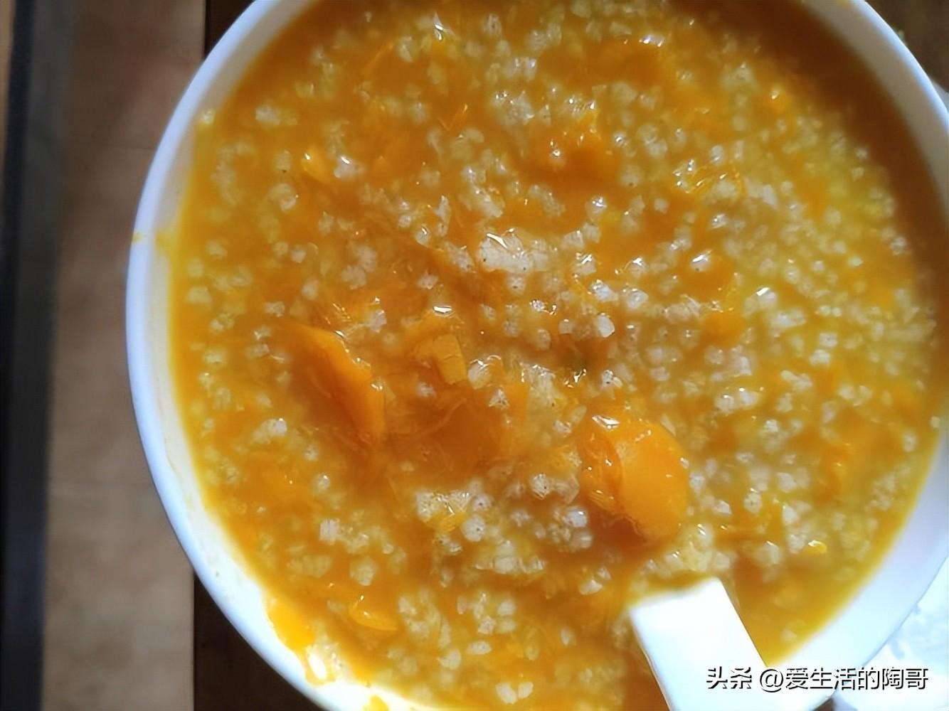 推薦食物,小米南瓜紅薯粥。小米搭配紅薯南瓜一起煮粥來喫,顏色好看, 味道香甜,營養極高,很適合中老年人羣來喫。