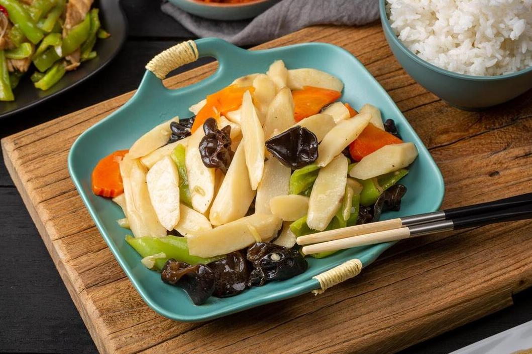 木耳泡發後清洗乾淨,山藥削皮後切成薄片,胡蘿蔔切成薄片,蔥花也切好。不需要焯水,直接起鍋燒油,將蔥花爆香之後,把這3樣食材都倒進去,開始不停翻炒,直至炒到斷生,放入鹽、蠔油、雞精,炒勻後出鍋。