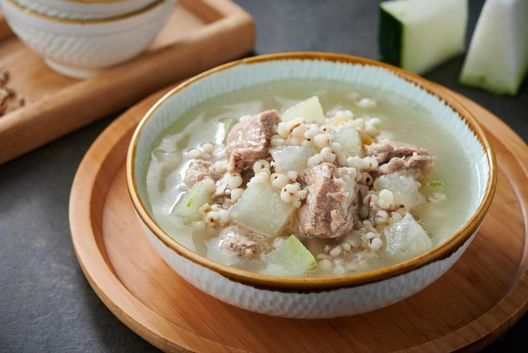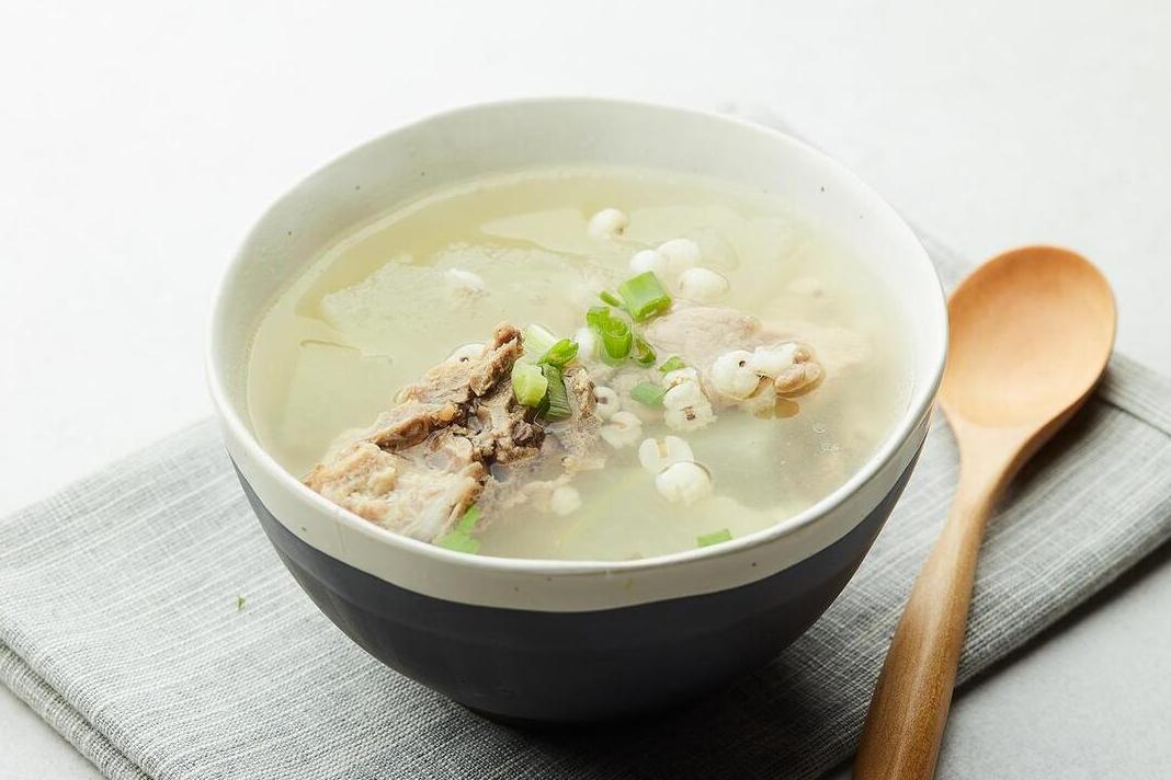 用料:冬瓜、薏米、排骨、薑片、蔥花、鹽、味精、料酒