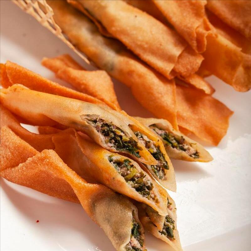 用到:薺菜、雞蛋、蔥姜、鹽、花椒粉、五香粉、蠔油、香油、餃子皮