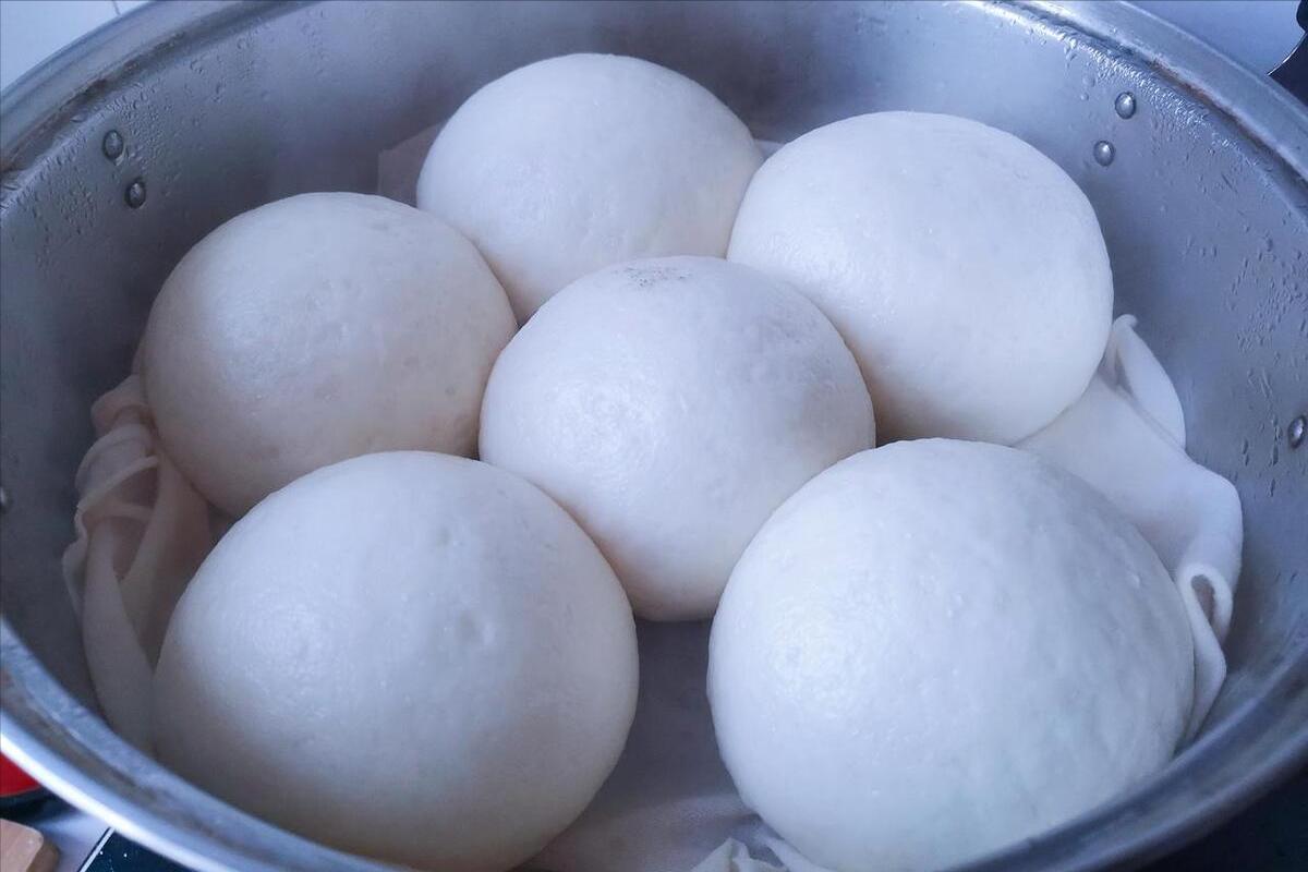 7、到時間後開火,全程保持大火,等燒開以後繼續蒸上20分鐘左右的時間,到時間後關火,先別急着敞開蓋子,耐心等待2分鐘,再將蓋子掀開,定睛一看,這不比饅頭店裏賣的還要好嗎?白白胖胖的,特暄軟、特蓬鬆。