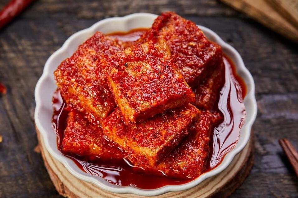 配料表:豆腐、高度白酒10g、醪糟汁50g、鹽25g、味精5g、花椒麪5g、辣椒麪適量、菜籽油適量