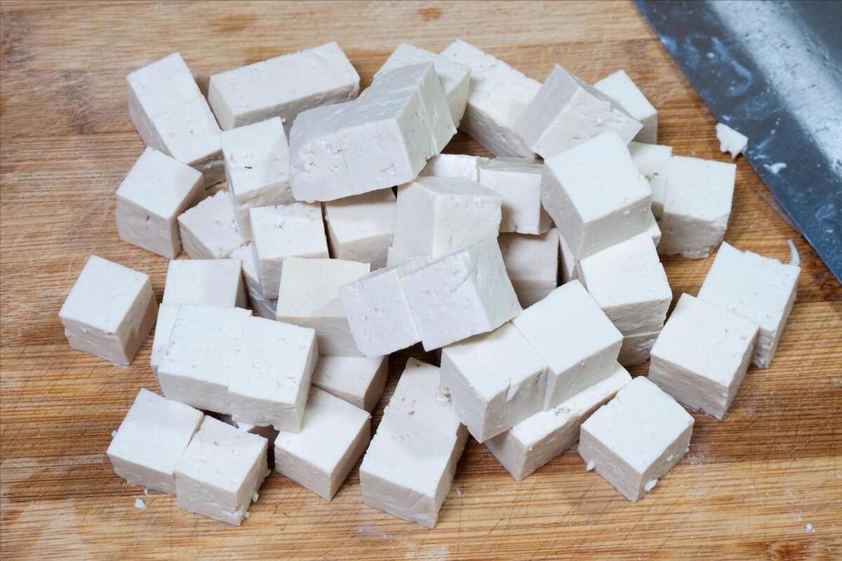 1、豆腐準備1斤,千萬別用太嫩的那種,要用就用硬一些的老豆腐,買來後沖洗1遍,然後直接上鍋蒸。