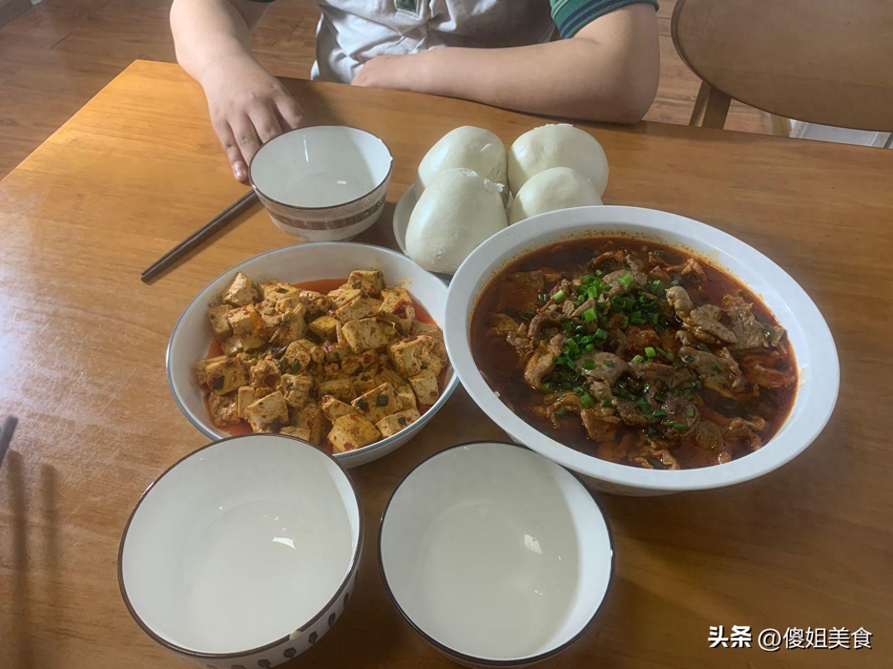兩道菜端上桌後可把孩子們饞壞了,一看這賣相就好喫。我們娘三個一人拿着一個大饅頭,一口饅頭一口菜,別提喫的有多香了,孩子們直說:真好喫,媽媽的手藝比飯店做的都要好喫。喫到最後連碗都快要喫了,賊過癮。