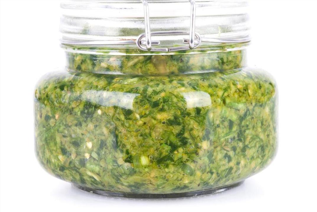 5、打碎後的梨子,將其倒在韭菜花中就可以啦,加上梨子之後,韭菜花的香味會更濃郁,這是“多放1樣”。接下來,還需要再往裏面倒入10ml的高度白酒,放入高度白酒,可以延長韭菜花的保質期,儲存時間更長,這是“多放2樣”。