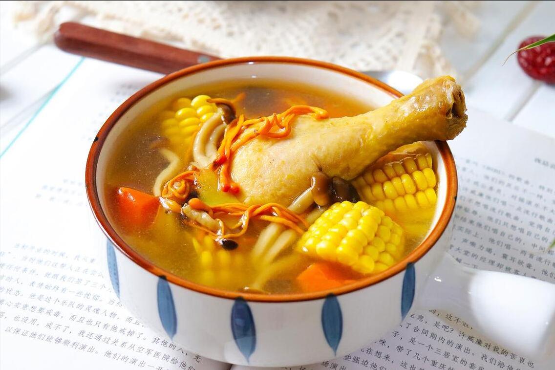 用到:雞肉、蟲草花、玉米、薑片、蔥花、料酒、鹽