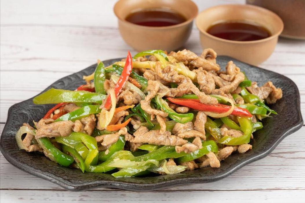用到:青辣椒、裏脊肉、大蒜、生抽、老抽、料酒、鹽、雞精、白胡椒粉、澱粉、食用油