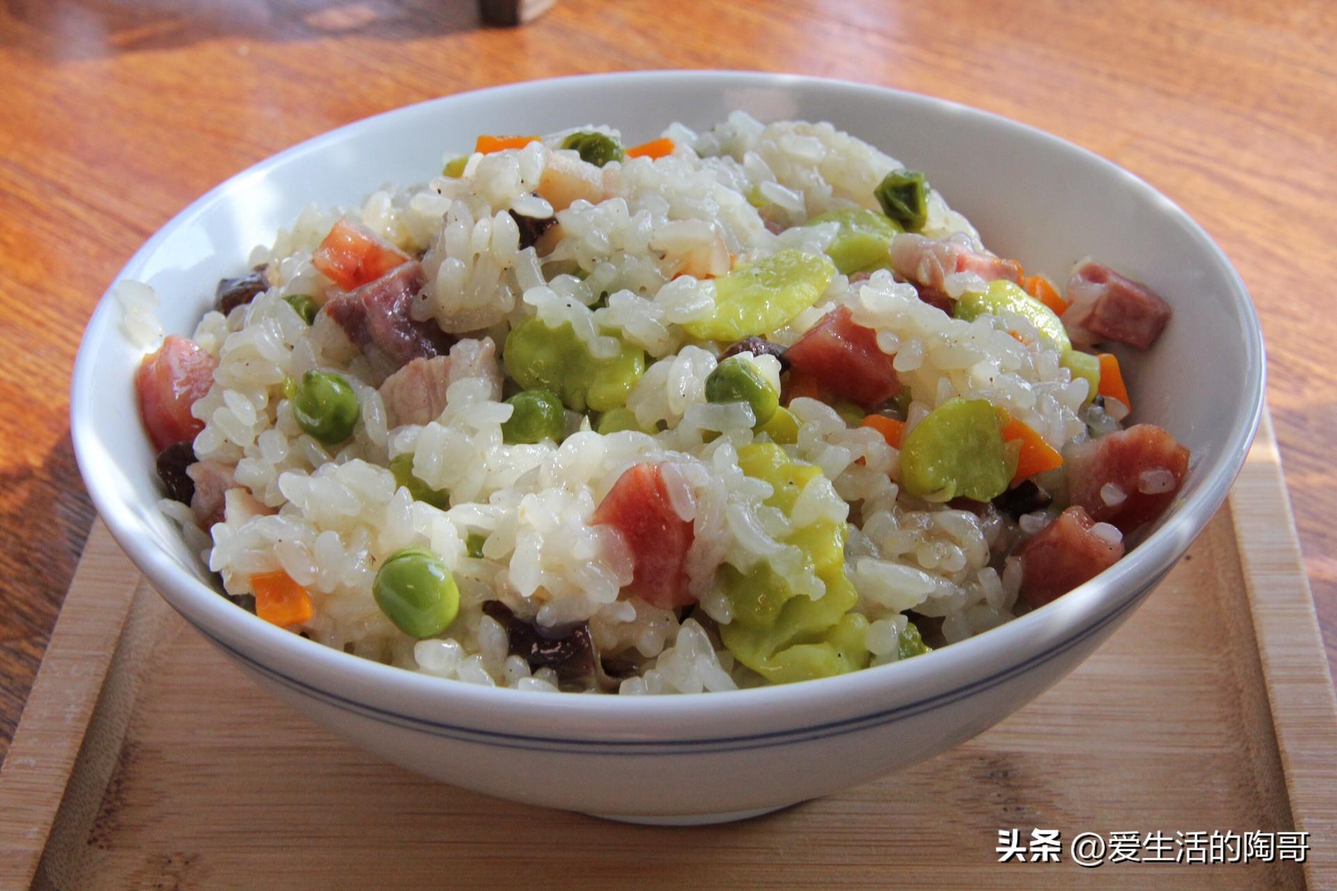 食材;蠶豆,豌豆,臘腸,臘肉,竹筍,胡蘿蔔,香菇,蔥,鹽, 生抽,糯米,大米